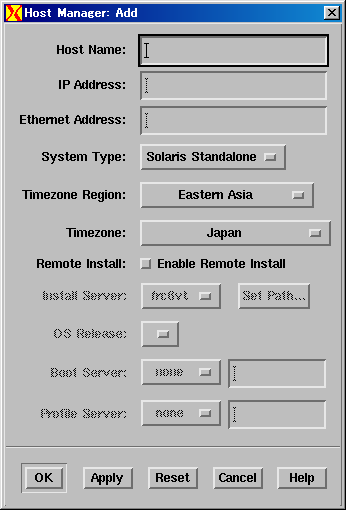 Solaris Diskless を選択すると、自動的に次の項目が設定された。