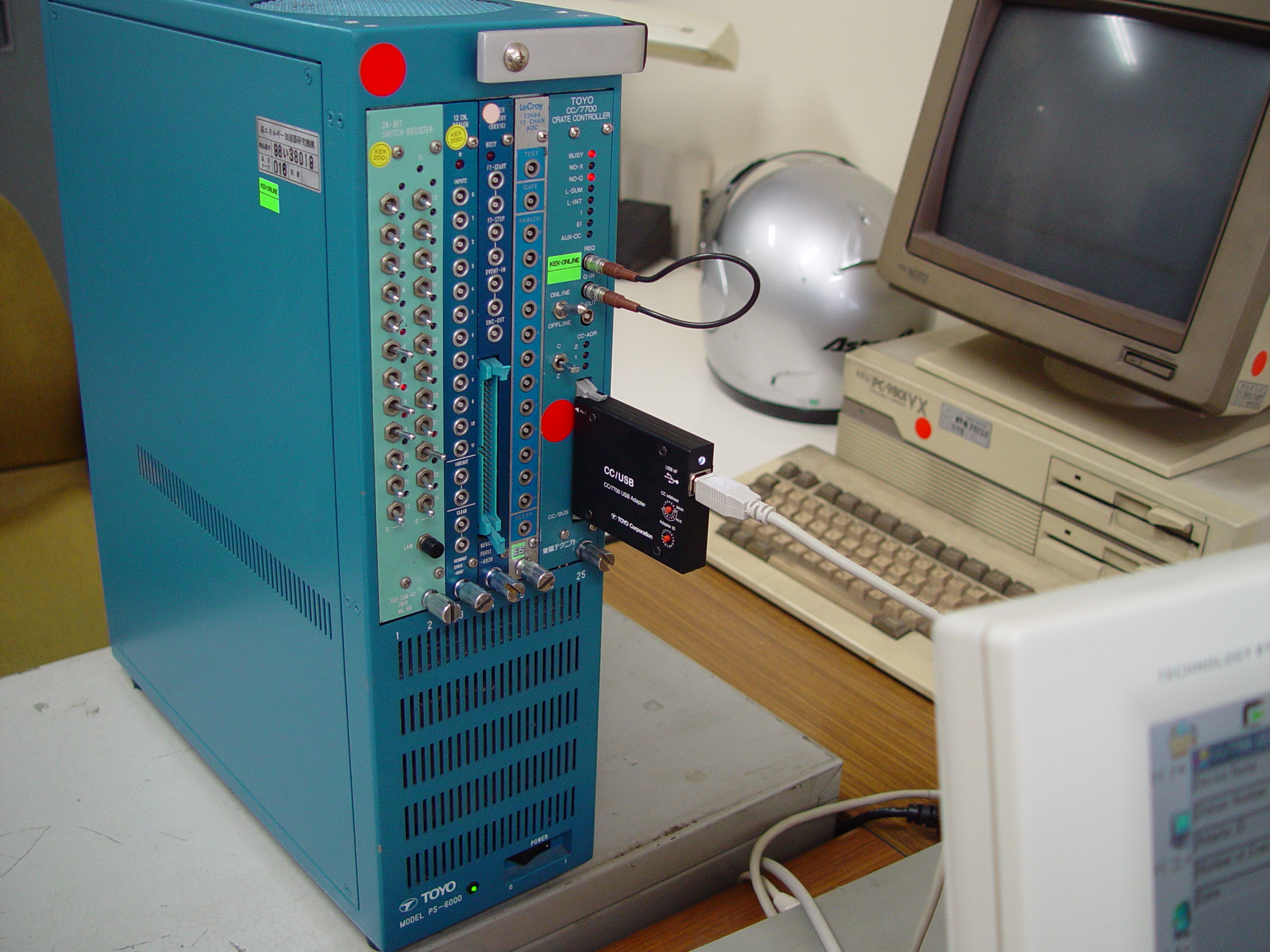 KEK 回路グループが開発した CAMAC モジュールに、24bit Switch Register なる モジュールがある。パネル上には 24bit の トグルスイッチと 24bit の LED があり、スイッチの読み取りと、 LED を制御するレジスタへの書き込みができる。また、パネル上に 押しボタンがあり、これを押すとLAM が発生する。このモジュールを 使うことにした。すなわち、