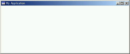 これを MinGW でコンパイルしてリンクするには、 g++ -mwindows myapp01.cpp とすればよい。Windows の場合は、これで a.exe ができる。これを実行してみると、 のような Window が開く。 |